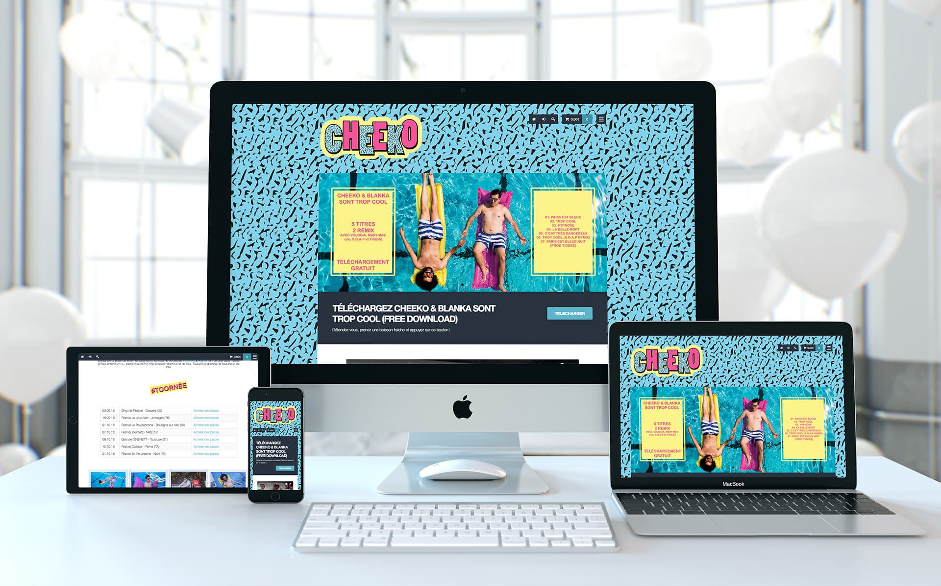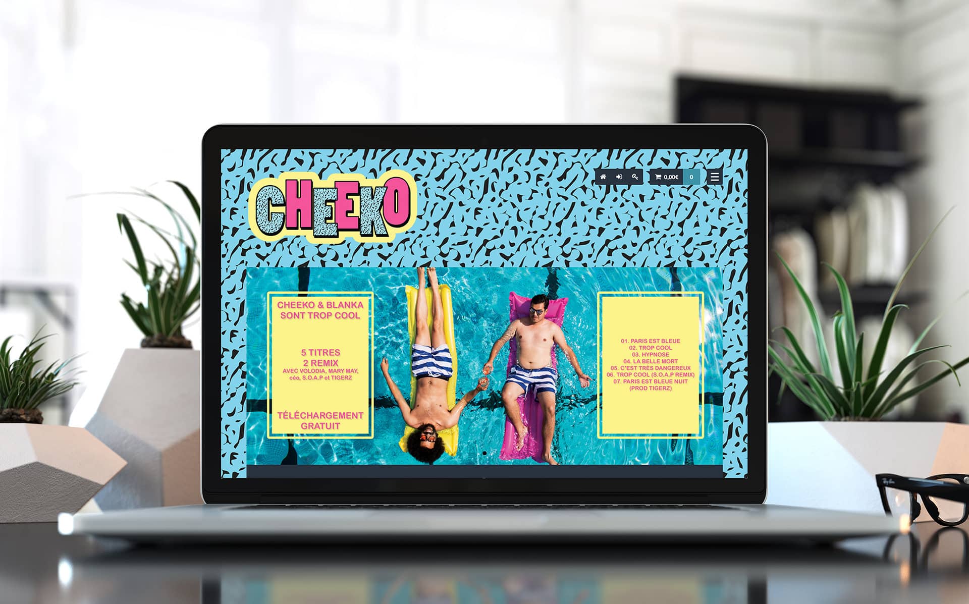 CHEEKO souhaitait un site pour mettre à disposition du public, son EP "CHEEKO & BLANKA SONT TROP COOL". Notre agence de communication basée à Limoges a répondu à ces exigences et Cheeko dispose désormais d'une plateforme vitrine et e-commerce, lui permettant d'entretenir un lien direct avec son public.